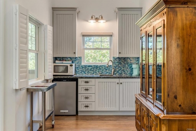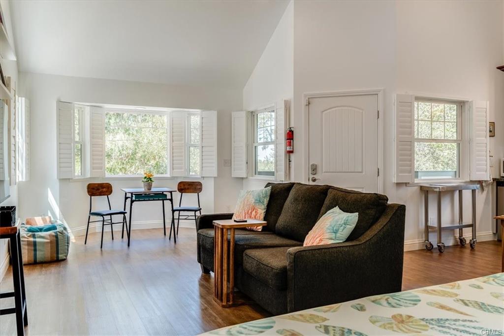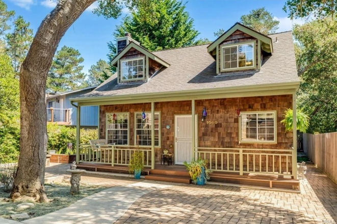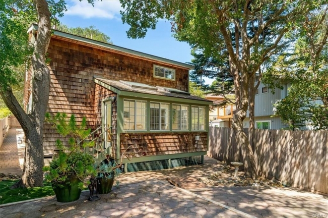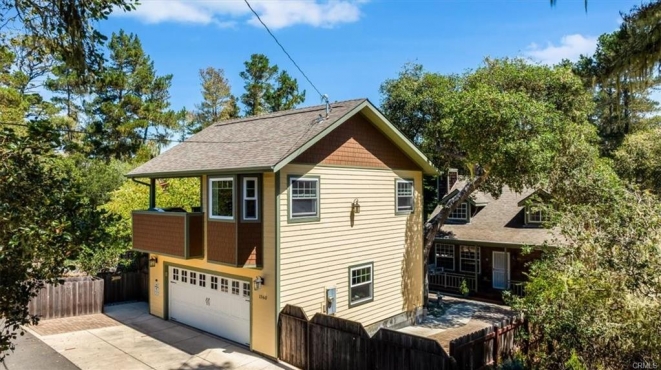 Located in a quiet corner of Lodge Hill in the village of Cambria, just steps from the Fiscalini Ranch Preserve, is this fully updated and maintained home with 3 bedrooms and 2 bathrooms, plus a 508 sq ft guest quarters that has been a licensed air bnb for years! The 624 sq ft garage has space for your cars and plenty of room for shop projects. The courtyard between buildings offers privacy and a gas fire pit for relaxing conversations under the stars. Inside the home you find an open plan with beautiful wood floors, a fireplace in the living room and beautiful hardwood cabinetry in the updated kitchen including stainless appliances. Window treatments are also tasteful and top of line. One bedroom is on the lower level so single level living works. A sunroom off of that bedroom allows for enjoying the outdoors in any weather. The full length front porch is another comfy spot for enjoying Cambria's outdoors. The guest quarters has kitchenette, full bath, walk in closet, vaulted ceiling, and a great porch for sitting and taking in the treetop views and the coastal range in the distance. It also has a mini split for AC and heating. The garage is equipped with three 220 outlets, optional laundry space, and natural gas so you are ready for any project! The oversized property is fenced, has hardscape with pavers, 40'+ RV parking inside fence, welded steel post/gates, spa pad with power, graceful oak trees... your own peaceful compound. PROFESSIONAL PHOTOS COMING SOON! Here's the link to the Airbnb rental:https.//airbnb.com/h/CambriaTreetopRetreat