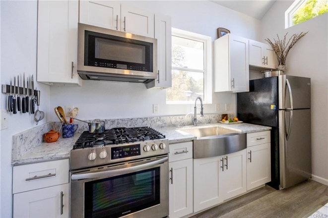 2070 Wales offers so much, beginning with a recently built cottage on nearly 1/4 acre property, surrounded by vacant lots, and an easy walk to Fiscalini Ranch Preserve! The home was completed in 2019 and is a cozy 1 bedroom/1 bathroom with open living, kitchen and dining. There is a loft that adds to the living area and high vaulted ceilings that combine with the many windows to create a very relaxed & comfortable living space. The 150' X 70' property is all usable, with oak trees scattered about, allowing for building your dream home with ample gardening, plus garage space for multiple vehicles and shop, etc. Finishes and appliances are updated and beautiful. This home can be your getaway, and your home while you design and build, and a future guest house for your friends!