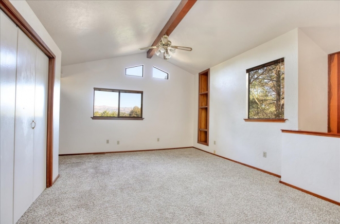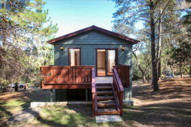 Near the end of an infrequently traveled road lies a cute two bedroom, two bathroom house surrounded by an abundance of trees. Enjoy views over these trees out to the Santa Lucia mountains, especially from the upper level! The main level has the kitchen, dining and living area, the second bedroom, and the second bathroom. Upstairs is a large primary bedroom with a deck that has views out towards the west. This home was built by the owner, who included thoughtful aspects, such as a floor plan that creates the feel of additional space, down to a stackable washer/dryer unit in one of the primary bedroom closets. The MANY vacant lots surrounding all three sides give the house a very private feel.