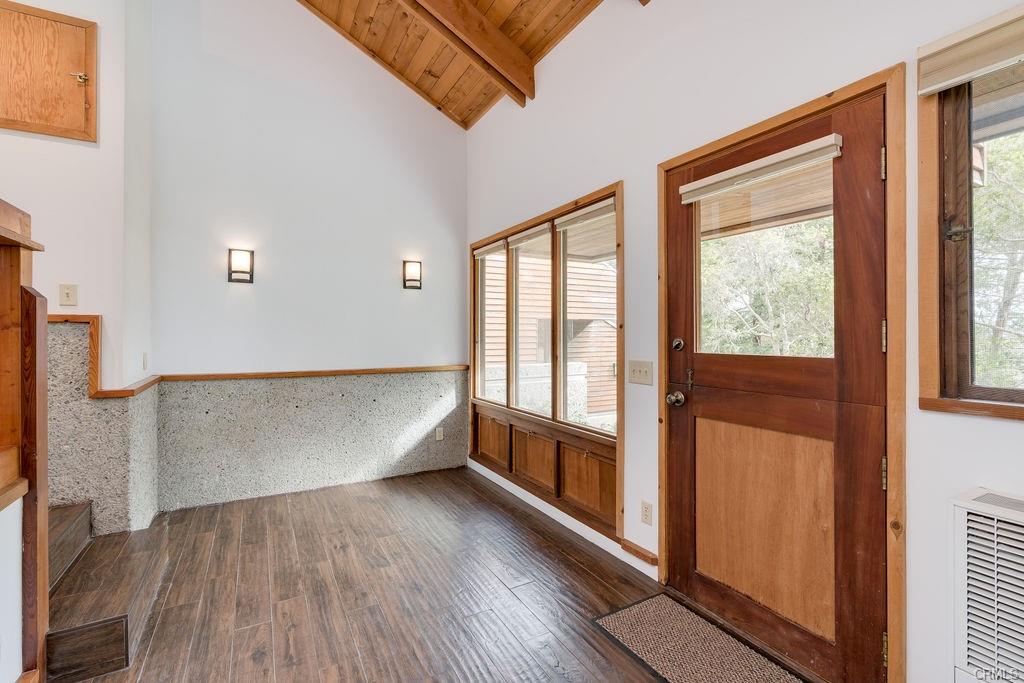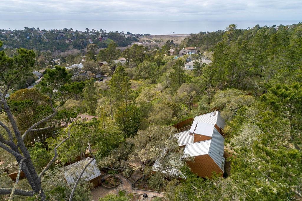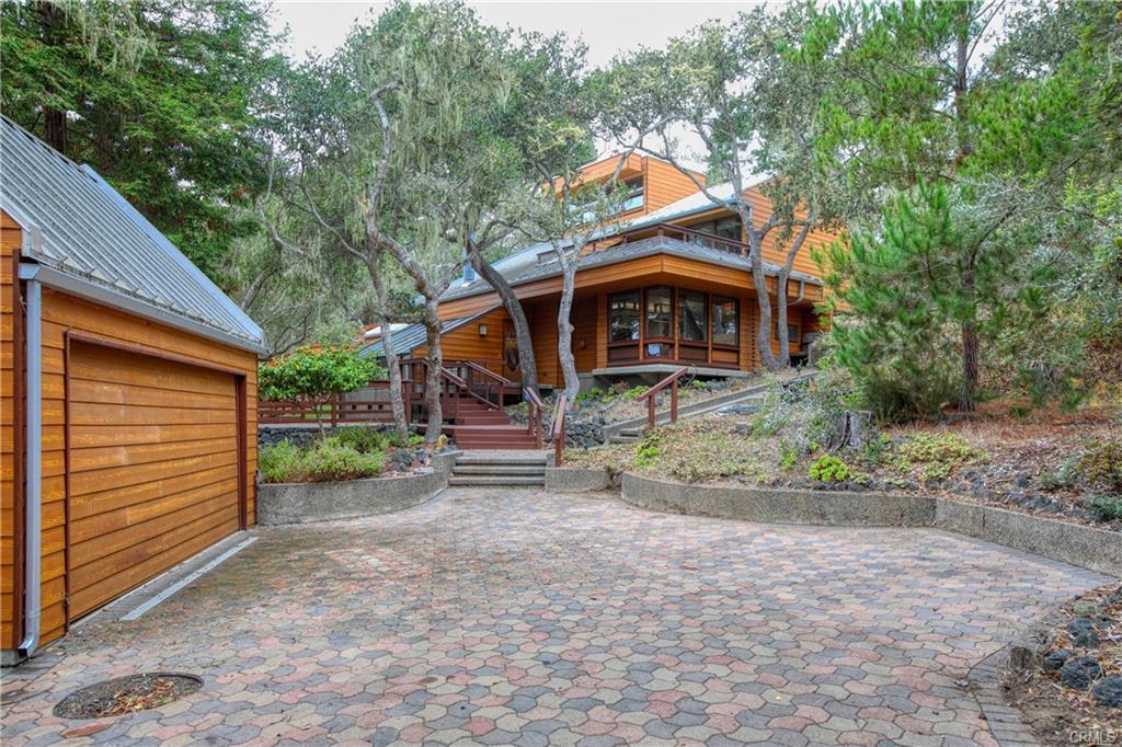 1021 Hillcrest is an architectural gem, perfectly designed for the 1+ acre site in sunny and sought after Pine Knolls, the original premier neighborhood in the seaside village of Cambria. This home features a passive solar design that incorporates Big Sur-esque exposed aggregate walls that serve as thermal mass complimenting the Douglas Fir post/beam structure. While the spaces are multi-leveled, only a few stairs separate each. Ceilings are vaulted and beamed, with skylights and windows for abundant light while feeling the outdoors mingle with your inside living. Decks provide plenty of outside living space where you can take in the awesome setting, which is not only adjacent to the approx 1,600 acre Covell Ranch, but also provides ocean views and powerful sunsets to the west! James Maul, noted Central Coast architect, designed so many features into this property, with paths and patios connecting the main home to the guest house, and the detached garage just below. The buildings are set back from the street, up the beautifully multicolored paver driveway, with extra parking areas, including RV area with hookups. The guest house has 2 bedrooms and a bath, also designed Maul-style with plenty of artful beam work. The two parcels total over one acre of privacy and unlimited options for your legacy property. A few minutes from the village, and a short drive to Big Sur, Paso Robles wine country, many beaches to meet your needs, and our big city of San Luis Obispo!! Call your realtor today for a private showing.