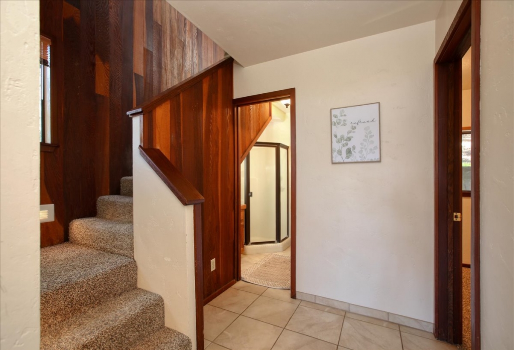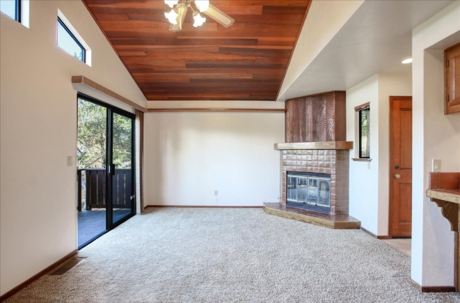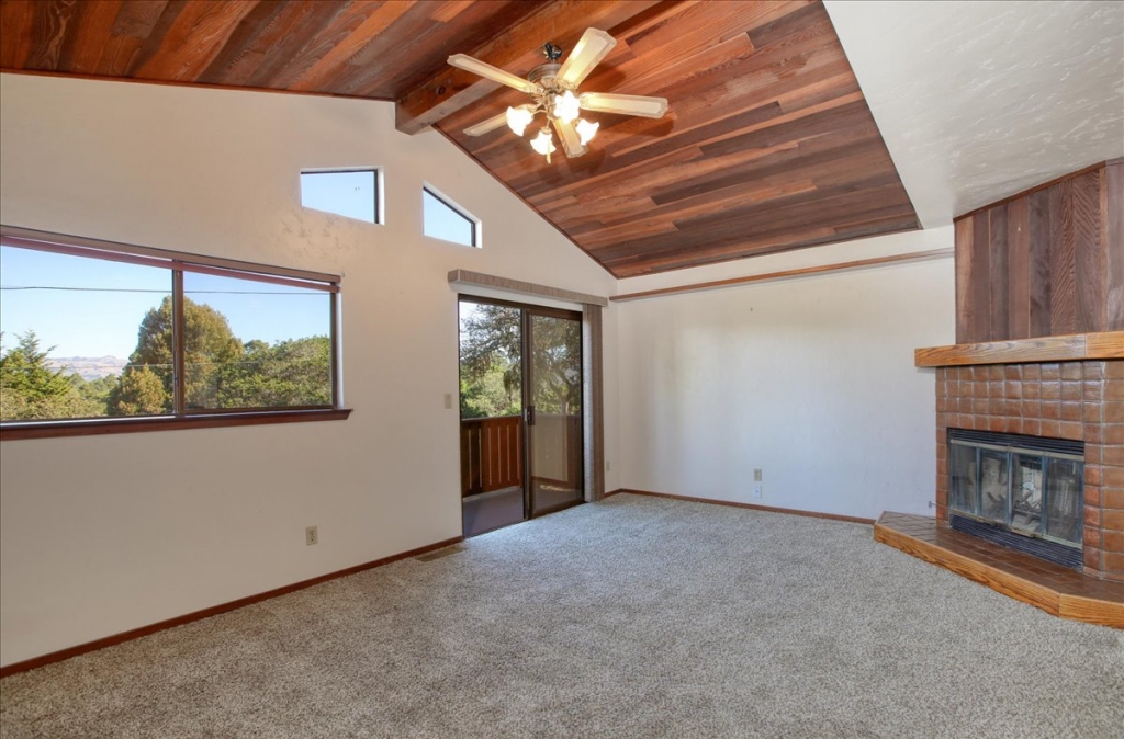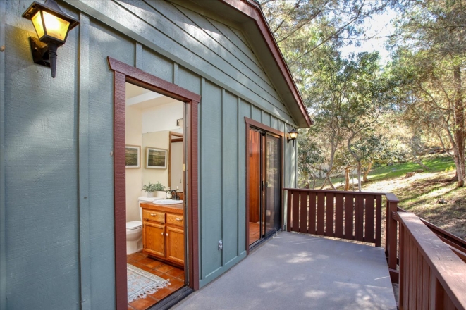 Near the end of an infrequently traveled road lies a cute two bedroom, two bathroom house surrounded by an abundance of trees. Enjoy views over these trees out to the Santa Lucia mountains, especially from the upper level! The main level has the kitchen, dining and living area, the second bedroom, and the second bathroom. Upstairs is a large primary bedroom with a deck that has views out towards the west. This home was built by the owner, who included thoughtful aspects, such as a floor plan that creates the feel of additional space, down to a stackable washer/dryer unit in one of the primary bedroom closets. The MANY vacant lots surrounding all three sides give the house a very private feel.